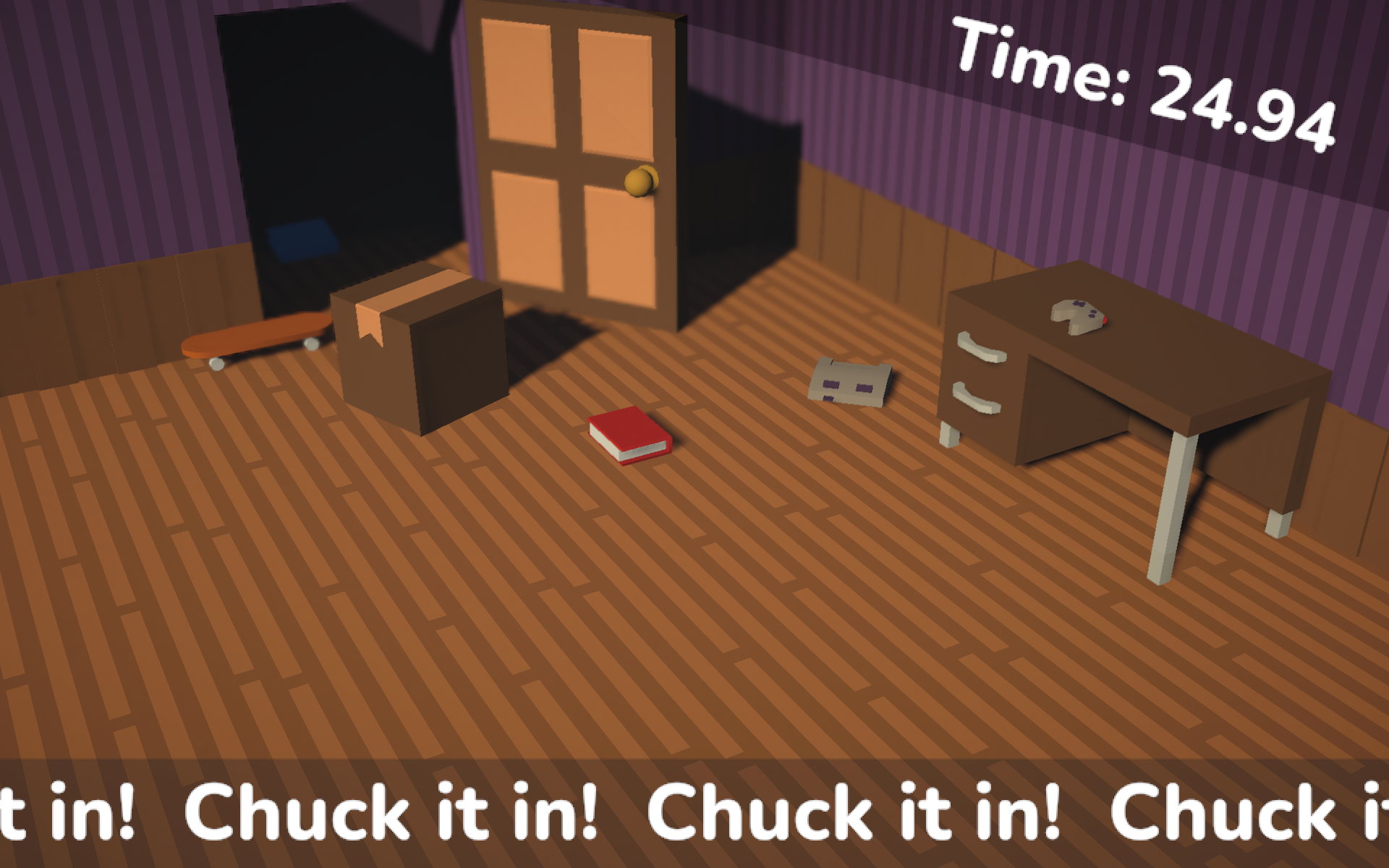 Click and drag to pick up objects and throw them into the closet.